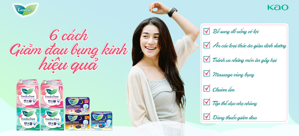 Con gái chúng mình phải chịu đựng thiệt nhiều thứ vào kỳ dâu rụng, từ chuyện mặt nổi vài cục mụn đáng ghét, đến cả những cơn đau bụng kinh kéo dài. Điều này khiến các Nàng thường lo sợ và chẳng muốn “bà dì” ghé thăm mỗi tháng chút nào. Nhưng Nàng ơi, chu kỳ kinh nguyệt đều đặn là món quà báo hiệu sức khoẻ nàng đang rất tốt đấy. Vậy nên nàng hãy cảm thông cho “bà dì" cùng một vài điều bất tiện “dì" đem tới, và hãy cùng Laurier “bỏ túi" 6 cách giảm đau bụng kinh hiệu quả nhé!